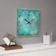 Teal and Turkos Bevaced Patterned Clock Fyrkantig Klocka
