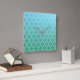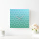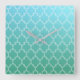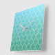 Teal and White Abstrakt Geometric Mönster Fyrkantig Klocka