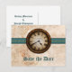 Teal Antique Clock Save Date Postcard Meddelande Vykort