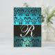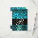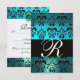 TEAL AQUA BLUE BLACK DAMASK MONOGRAM OSA KORT