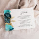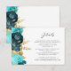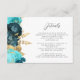 Teal Aqua Floral Gold Script Wedding Details Tilläggskort