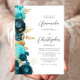 Teal Aqua Floral Gold Script Wedding Inbjudningar