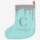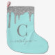 Teal Aqua Gnistra Silver Glitter Drives Monogram Stor Julstrumpa