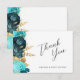 Teal Aqua Gold Floral Wedding Flat Thank You Kort