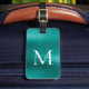 Teal Aqua Grönt Brushed Metall Script Monogram Gla Bagagebricka
