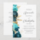 Teal Aqua Guld Blommigt QR-koden Bröllop Inbjudningar