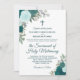 Denna vackra bröllopsinbjudan är perfekt för en modern katolsk ceremoni. Den har en rustik boho-chic med elegant, skript och handmålad vattenfärg ro i färgnyanser, turkos och akva. Innehåller en kor eller crucifix och en ordalydelse som uppmanar gästerna att delta i en livlig massa som förenar paret i heligans sackrament. Inbjudan är en perfekt av en kombination av formell tradition och modernt stil. skapar det ett underbart sätt för dina vänner och din familj att i din glädje på din speciella dag.