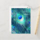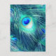 Teal Aquamarine Peacock Feather Vykort