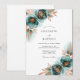 This design features rich teal blooms with hints of copper foliage, evoking a sophisticated, autumnal romance. The painterly watercolor style creates a soft, ethereal atmosphere. Imagine delicate anemones and lush leaves gracing your special day.