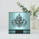 Teal blue chandelier söt 16 födelsedagsfest inbjudan.