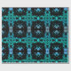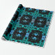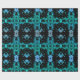 This striking wrapping paper features a bold teal and black kaleidoscope fractal pattern arranged in a seamless geometric repeat. Intricate symmetrical shapes and layered textures create a dramatic design that blends abstract symmetry, psychedelic color, and modern digital art into a vibrant decorative pattern.