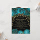 Quinceañera 15:e födelsedagsfest inbjudan för flickor med vackra, elegant teal ro/blommor med guld glitter och glättstjärnig ljus på svart bakgrund. Anpassa genom att lägga till fotot på baksidan av kortet.