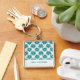 Teal-blommor, eget namn, vitt fyrkantig silverfärgad nyckelring