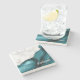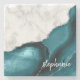 Teal Blue Agate Namnteckning White Marble Silver Stenunderlägg
