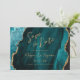 Med det här elegant bröllop sparar du datumkortet en bakgrundsbild av tealblått vattenfärgsagat som trimmas med faux guld glitter. Anpassadet kombinerar modern handskrift, tryckplåt och kursivt typsnitt med guld-färgad. Den bakomliggande sidan har en samordnande teal och guld agate-utformning.