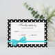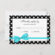En svart snyggt-polka-punkt mönster med tealblått band visas på detta svarskort för OSA. Anpassa enkelt med din information. Utformningar är platta tryckta illustrationer/grafik - INTE ACTUAL RIBBON.