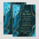 Teal Blue and Gold Agate Marble Save The Date Inbjudningar