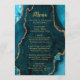 Create a striking presentation with this teal blue and gold agate marble menu, perfect for wedding receptions and versatile enough for stylish multi-purpose use. Deep ocean tones, organic stone-inspired textures, and shimmering gold accents come together to create a refined yet dramatic look that pairs beautifully with fall or winter celebrations. Designed to complement elegant, modern, and glamorous events, this agate-inspired menu can be customized for wedding dinners, cocktail hours, dessert tables, or upscale event and restaurant menus, offering timeless sophistication that extends well beyond the wedding day.