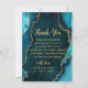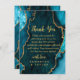 Make a bold and elegant statement of gratitude with this teal blue and gold agate marble thank you design. Featuring rich jewel tones, organic stone textures, and shimmering gold accents, this design is perfect for couples who want to extend the luxury of their celebration beyond the wedding day. Deep ocean hues paired with metallic gold detailing create a dramatic yet refined aesthetic, ideal for formal, modern, or glamorous fall and winter weddings. Fully customizable to reflect your names and message, this agate-inspired thank you card adds timeless sophistication to your post-wedding correspondence.