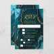 Make a bold and elegant first impression with this teal blue and gold agate marble RSVP card, featuring rich jewel tones, organic stone textures, and shimmering gold accents perfect for fall and winter celebrations. This design includes customizable text boxes and meal selection checkboxes, allowing your guests to indicate their preferences. The default options are beef, chicken, or vegetarian, but these can be easily changed to suit your event. The deep ocean hues paired with metallic gold detailing create a dramatic yet refined look ideal for a wedding RSVP, birthday RSVP, or Sweet Sixteen RSVP with a formal, modern, or glamorous aesthetic. Inspired by natural agate and geode patterns, this luxurious design coordinates beautifully with upscale seasonal events and is fully editable to match your details, adding timeless sophistication to autumn and winter celebrations alike.