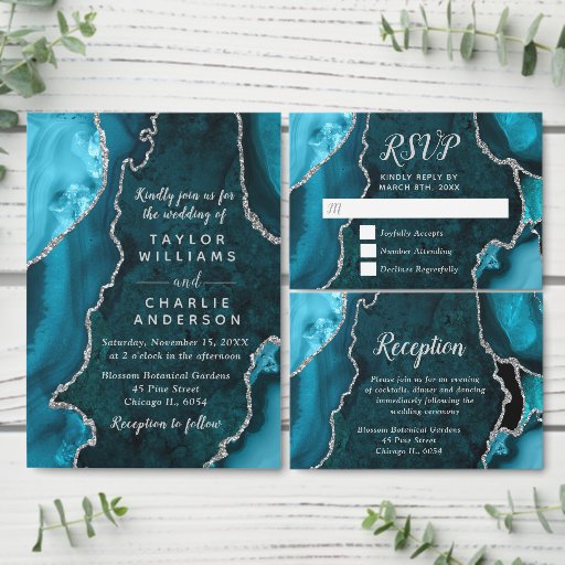 Teal Blue and Silver Agate Marble WeddingDesignad av Kirsty W