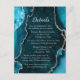 Celebrate every detail of your wedding with this teal blue and silver agate marble details card. Rich ocean hues, organic stone textures, and shimmering silver accents combine to create a sophisticated, jewel-toned design that complements a modern, elegant, or glamorous celebration. The striking contrast of teal blue and metallic silver provides a polished backdrop for sharing both reception and lodging information, keeping your guests informed in style. Fully customizable with your event schedule, hotel details, and special notes, this agate-inspired card adds a cohesive and refined touch to your wedding stationery suite, perfect for fall or winter weddings.