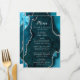 Display your meal selections in style with this elegant wedding menu featuring a teal blue agate marble design accented with silver details. The geode-inspired background creates a sophisticated look, perfect for fall and winter weddings, formal celebrations, or evening events. Designed to coordinate with your wedding stationery suite, this menu is ideal for presenting courses clearly while adding a luxurious touch to your table setting. The clean typography ensures readability while complementing the agate texture. Easily personalize all text to suit your menu and event details, making it a beautiful choice not only for weddings but also for engagement parties, anniversaries, and other formal occasions.