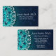 Teal, Blue and White Blommigt Swirls Mandala Visitkort