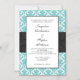 Teal Blue Black Damask Magnetic Bröllopsinbjudans Magnetisk Inbjudningskort