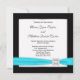 Svartvit tealblått diamanttrim ger svart inbjudan till provbröllop.