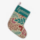 Teal Blue Blommönster Retro Mysigt jul Liten Julstrumpa