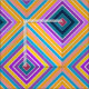 Fabric i en tealblått, guld och lila med blå modern mönster, vit bakgrund kan ändras till vilken färg som helst