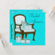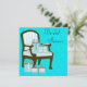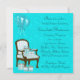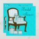Teal Blue-damm med stol och gåvor från rial inbjudningskort för möhippan.