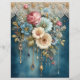 Teal Blue Flower Gems Junk Journal Scrapbook Paper