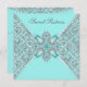 Elegant silver och tealblått juvel sweet sixteen födelsedagsfest inbjudan. Den här eleganten är tårblått och silver födelsedagsfest inbjudan fungerar bra för en Quinceanera, flickor oavsett antal födelsedagsfester, kvinnor oavsett antal födelsedagsfester, kallblodig bröllopsinbjudning för silver, årsdag party, företagshändelse och andra speciella tillställningar. Lägg till dina detaljer på framsidan och/eller baksidan genom att helt enkelt lägga till din händelseinformation, teckensnittet stil, teckensnittet storlekare & färg och ordalydelsen. Observera att alla inbjudningssymboler du hittar på Zazzle är tryckta bilder på platta papprare lagrar utan egentliga juveler, knärör, upphöjda, präglade eller tillagda delar eller delarare.