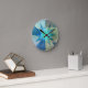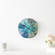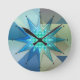 Wall clock featuring a playful geometric design in teal and blue green with a harlequin patterned star. The dots for the hour indication are optional and can be deleted if you do not need them.