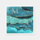 Teal Blue Guld Marble Anpassningsbar Brev Namn Nap Pappersservett