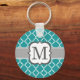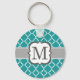 Teal Blue Monogram Brev M Quatrefoil Nyckelring