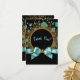 Teal Blue och guld tack för att du fick ett kort med tealblått och guld glitter och stjärnsprängningar. Det vackra födelsedagsfesten och evenemanget i guld och i stil är ett tack som du enkelt kan anpassa genom att helt enkelt lägga till ditt budskap i typsnittet stil och färg och den text du väljer. Det här är en tryckt design utan äkta juveler, glitter, bögar osv.