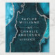 Teal Blue och Silver Agate Marble Bröllop Vinflaska Etikett