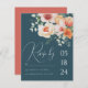 Ange tonen för vår eller sommar bröllop med den här eleganten Teal Blue & Orange Blommigt OSA kort. Med en färsk, handmålad vattenfärgsdesign i mjuk persika, tealblått och varmt orange ger OSA kort dig en handduk av romantik och säsong charm till din bröllop-kontorssvit. Perfekt för boho, rustik eller bröllop utomhus är det här kortet helt anpassade - uppdatera ditt svarsdatum, måltider och gäst namn med lätthet. Den moderna men tidlösa typografin parar vackert med rikens botaniska accenter, skapar det som en utmärkt biet för din speciella dag. Vare sig du är värd för en trädgårdsceremoni, ett badbröllop eller en romantisk vår-trädgård firande, samordnar den här OSA kort på ett utmärkt sätt med matchande inbjudningar och bröllop-essentialer i samma samling.
