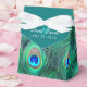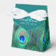 Elegant tealblått och vibrant framträder grönt, royal blått och tealblått pajefläder bröllopsboxar. Du kan lägga till text i typsnittet stil, storlek och färg efter eget val på denna vackra tealblåa bröllopsruta.