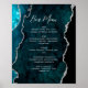 Teal Blue Silver Agate Script Wedding Bar Menu Poster