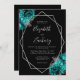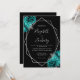 Teal Blue Silver Floral Black Wedding Inbjudningar