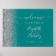 Teal Blue Silver Glitter Wedding Welcome Sign Poster