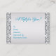 Elegant silver teal jewel trim-kort för företagspresentkort för företag. Lägg till informationen längst fram och/eller bakåt genom att helt enkelt välja orangen "Anpassa den!" för att börja lägga till information om din händelse, stil, teckensnitt storlek & färg och text. Observera att alla inbjudningssymboler som du hittar på Zazzle är tryckta på platta pappra lagrar utan några egentliga juveler, krukor, upphöjda, präglade eller tillagda delar eller delara.