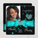Teal Blue Sweet 16 Födelsedagsfests Diamond Photo Inbjudningar