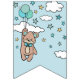 Välkomna baby som buntar flaggor till en babydusch för björnbabyn i baby. Barn och babydusch hälsar baby välkommen att bunta flaggor med söta björnar som håller ballonger i teal och blå.