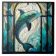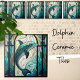Teal Blue White Dolphin Faux Mosaic Stached Glass Kakelplatta