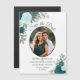 Teal Boho Blommigt & Photo Bröllop spara datum Magnetisk Inbjudningskort